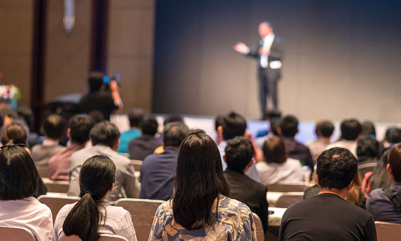 Exposición en público sobre un tema o asunto específico impartido en la empresa o en algún auditorio adecuado a las necesidades del cliente.